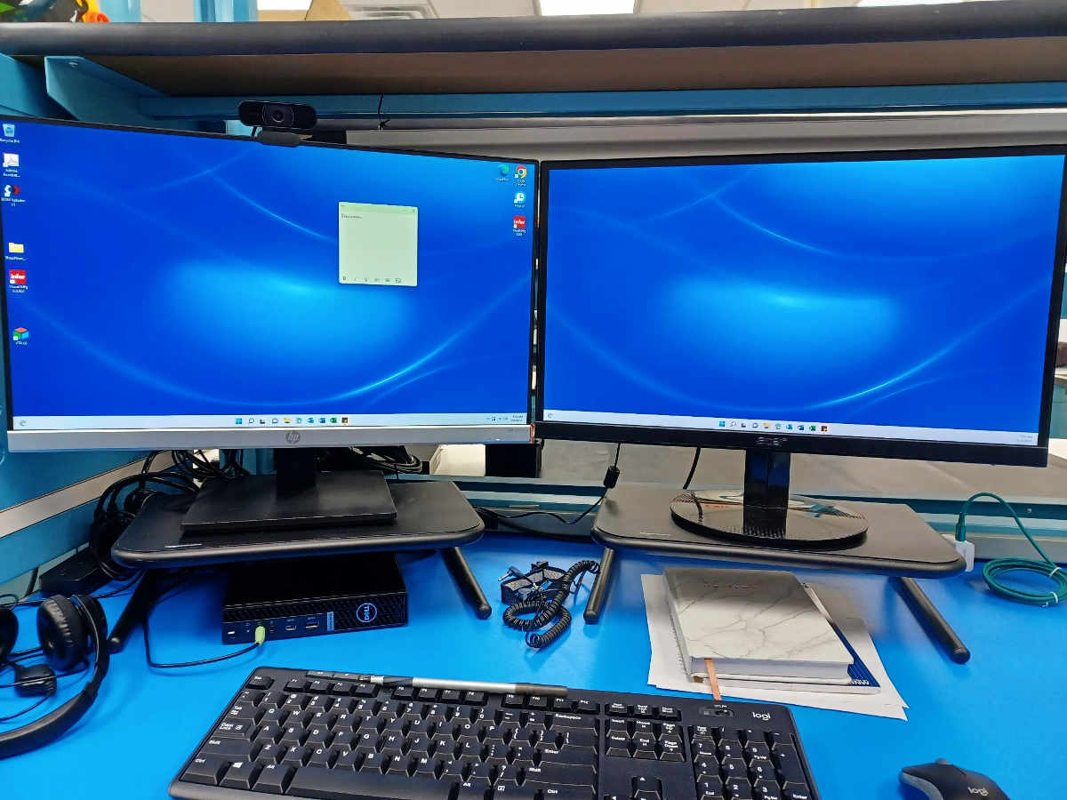 Meanwhile, Athennia sent me a picture of the surprise "present" she'd received at work: They hooked her up with another screen so she can be part of the dual-monitors club...