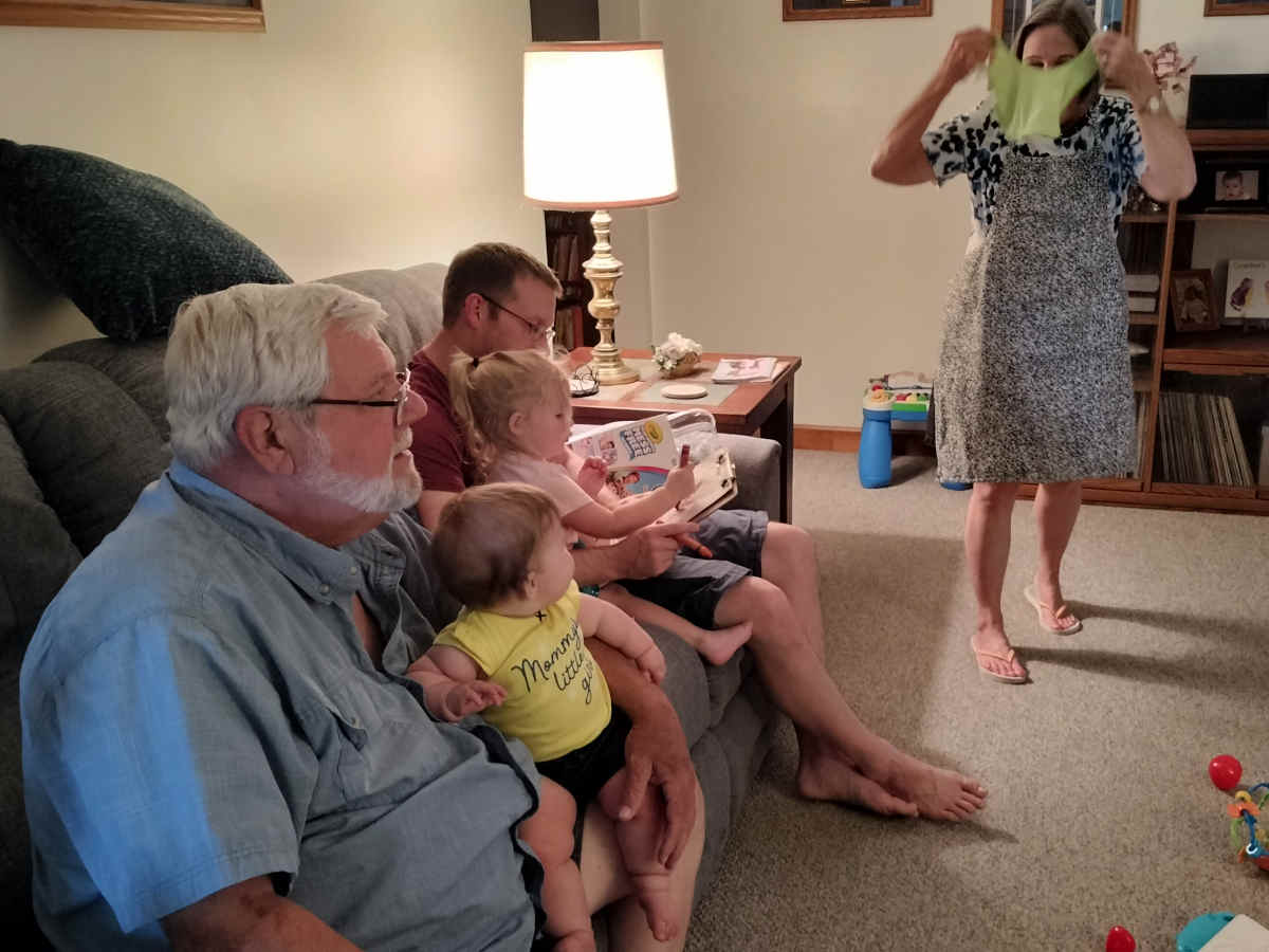 Liv wanted to read Riley a story. She turned to the first page and declared,