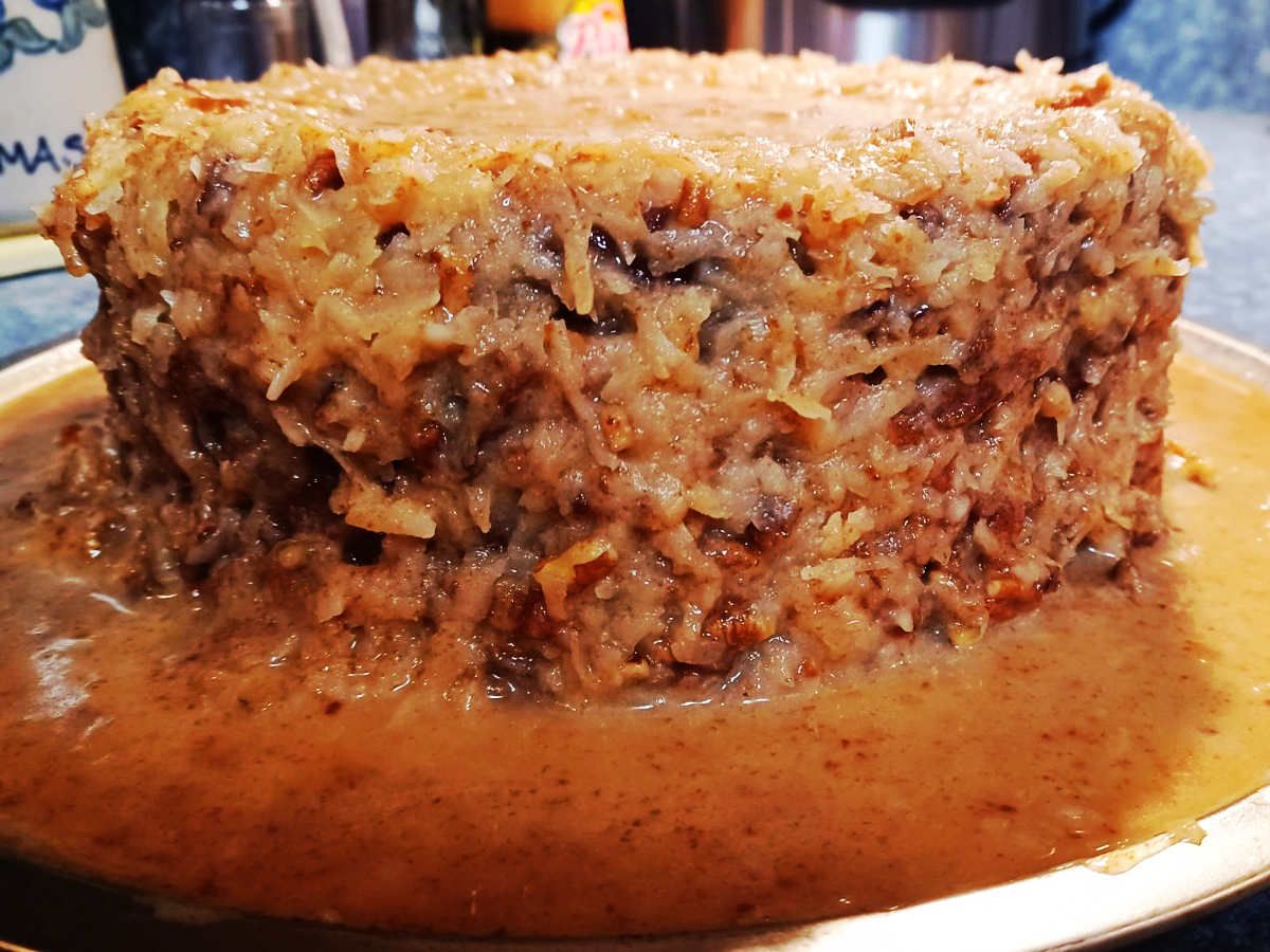 After dinner we had dessert. I had spent several hours making my triple layer German chocolate cake the night before (after putting off making it at least twice now since Kevin and I met, because it's so time consuming).