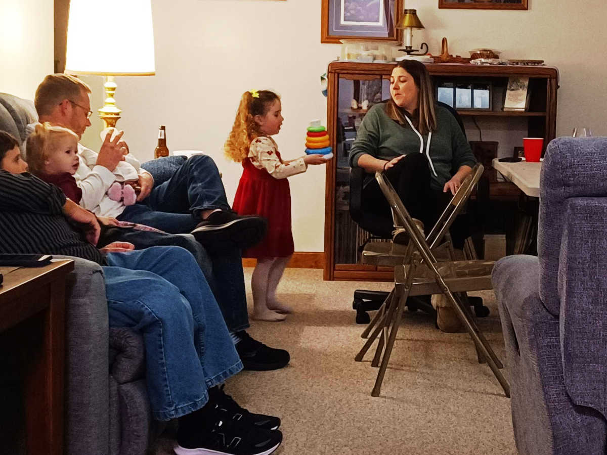 Everyone else was there though: Catherine and Ron; Kelly, Steve, Olivia, and Hannah; Roy and Sue; David, Angie, Alexis, Kayla, and Natalie; Laura, JD, Ava, and Maya; Karen; Peter, Alissa, Liam, and Ellie; and Kevin, Riley, and me.