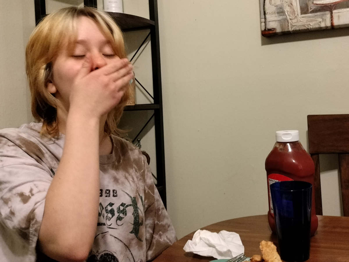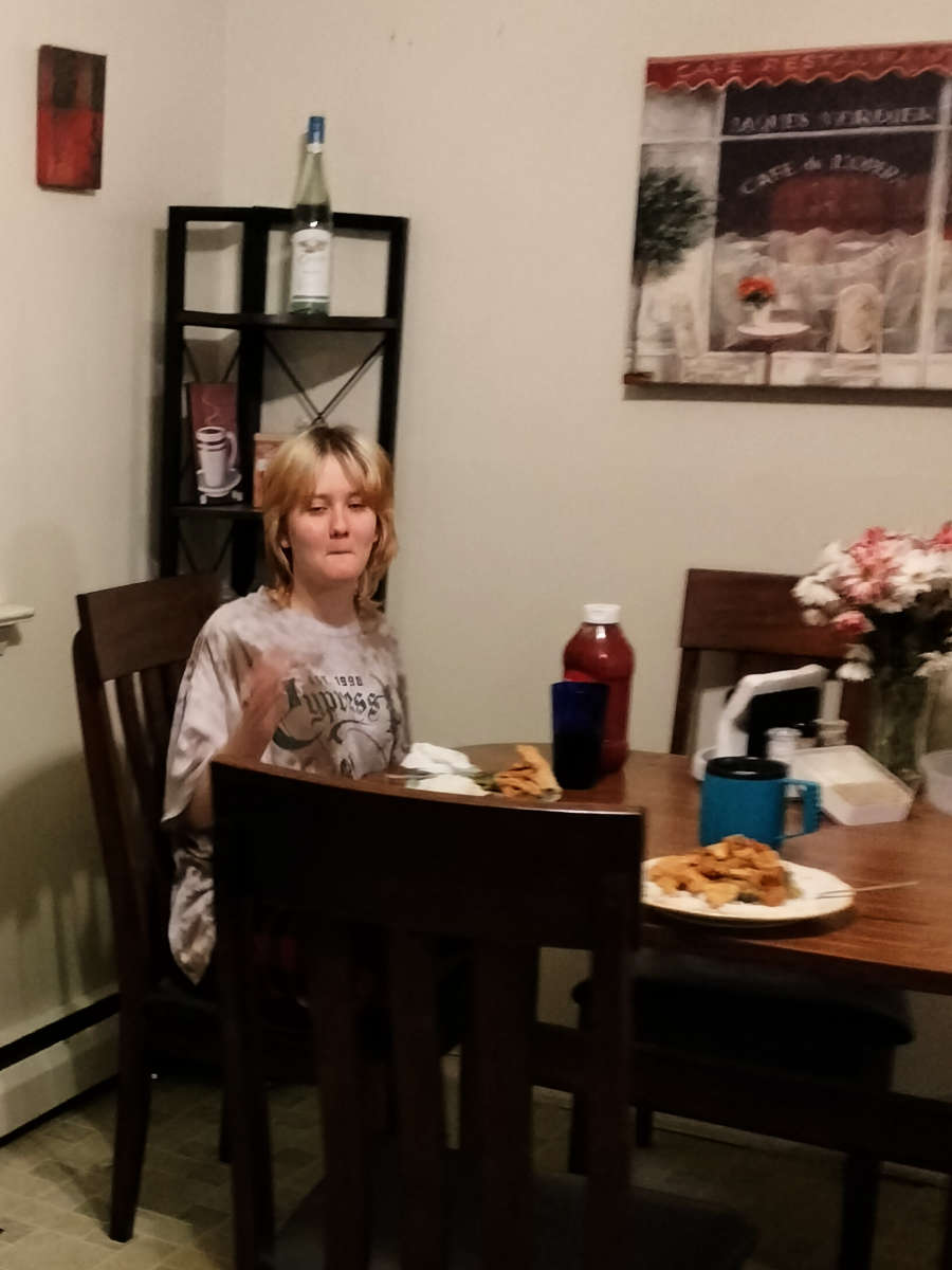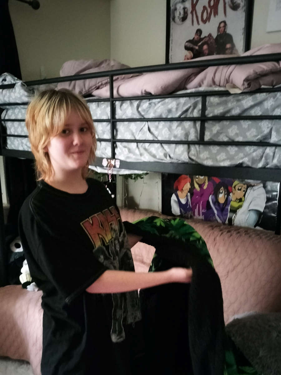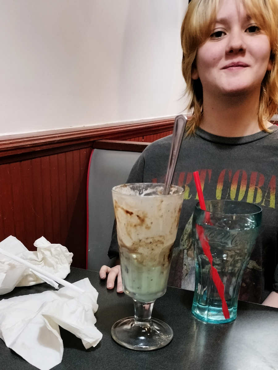 Just that quickly, I could already see the blanket's influence on Riley! A Kurt Cobain shirt and a green-colored sundae?! That's bad news!