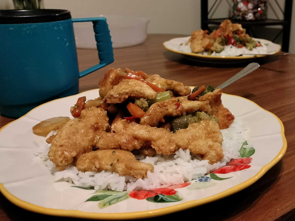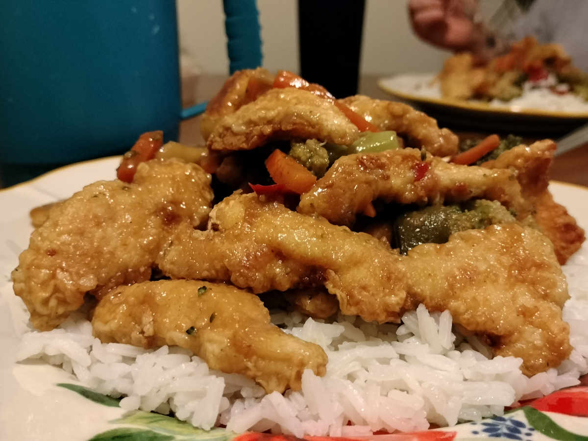 Thursday night we had a phenomenal chicken stir fry for dinner: I thought it was from a kit, but then Athennia said she had made it from scratch!