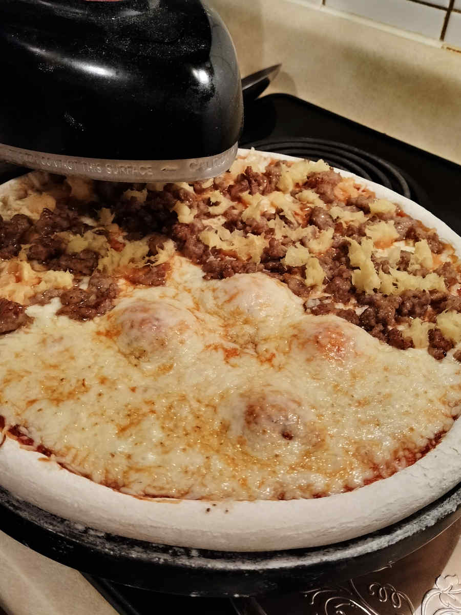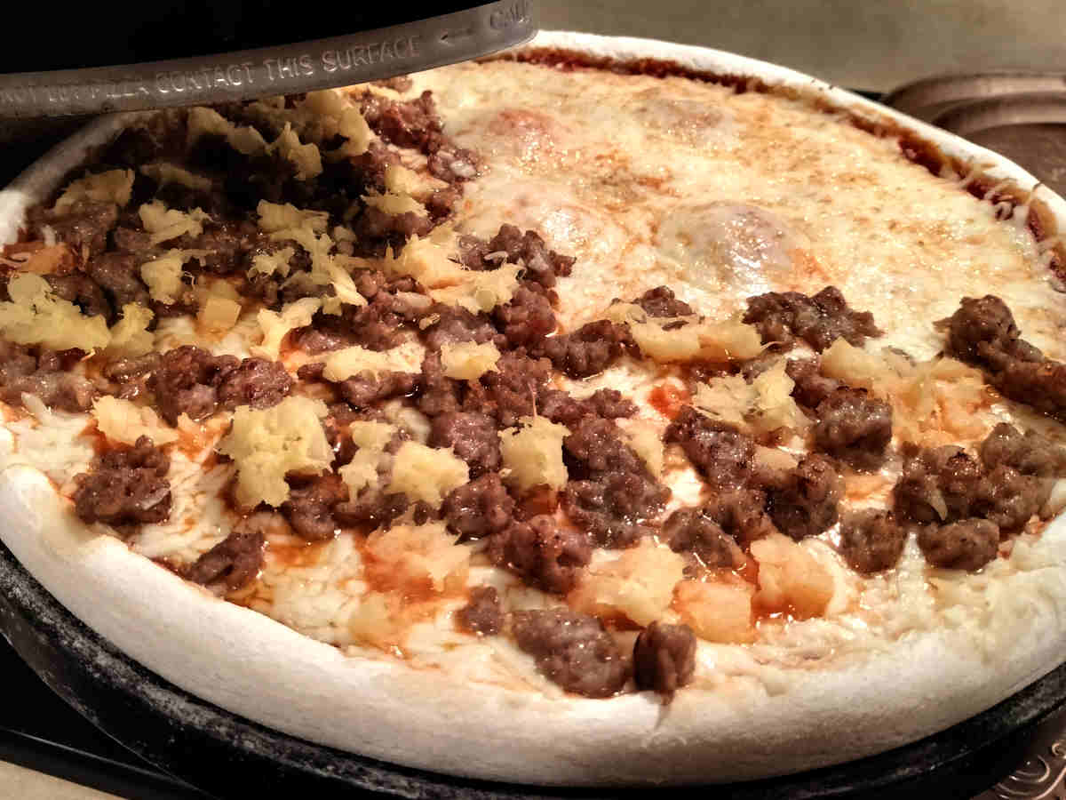 Then on Friday night we whipped up a pizza. I find plain pizza kind of stale after a while, but that's the only kind Riley will eat; so, we tried to find a happy compromise in a 66% Hawaiian, 34% plain pie...