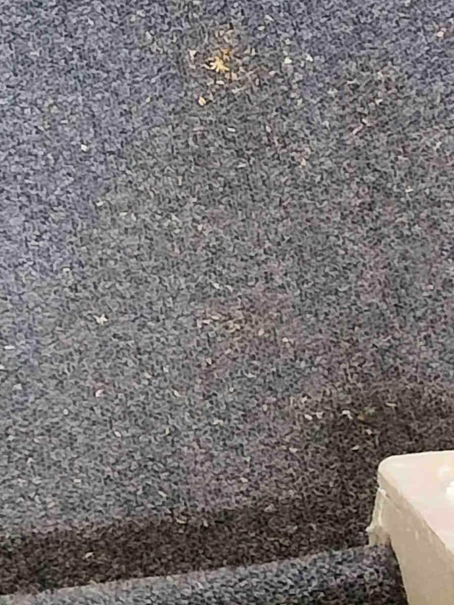 And yes, she really is such an airhead that she can walk a distance like that without knowing (or caring?) that there's a hole in the bag of trash she's carrying. (Sometimes it'll be vacuum dust and floss-picks all over the stairs. This time it was fried rice.)