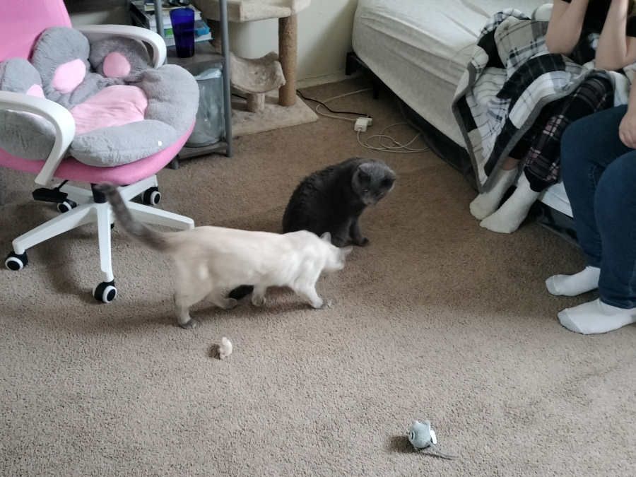 ...And, to reassure him that everything was back to normal and A-OK (despite him being taken away from us for several hours the night before), we decided that some company might lift his spirits.