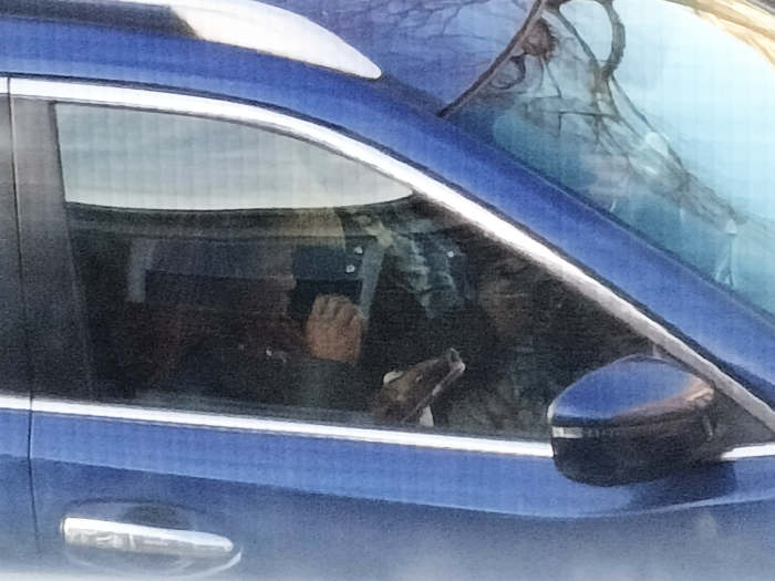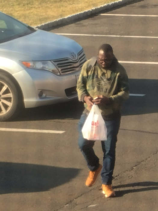 If you really want to, you can assume the sun is in his eyes and he doesn't look this dopey all the time. But, at any rate, he was rocking his camouflage Adidas shirt today; and so, since he was feeling extra spry and confident that he was invisible from the waist up, he decided to try his luck with multitasking! (With his IQ, he had about seven points to allocate to walking, and another six or seven for texting. And, he managed to pull it off... this time, at least.)