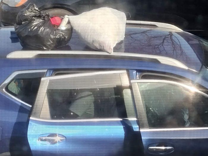First, we've got "Hopalong," who drives a smashed-up Toyota Venza (with Massachusetts plates... despite the fact that he had already been here for a couple months when I moved in the weekend after Thanksgiving).