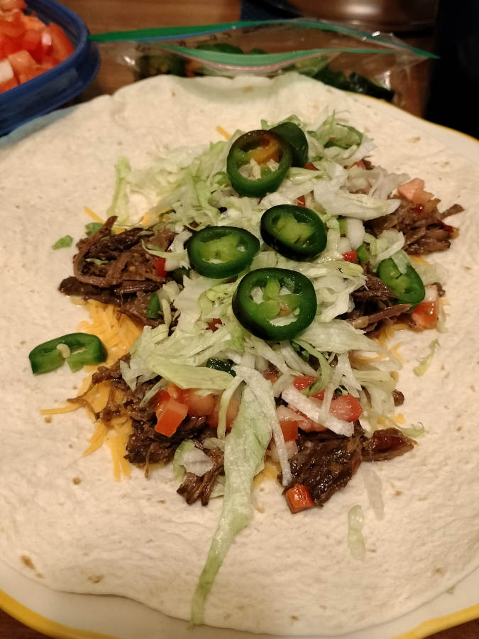 To celebrate, we made tacos for dinner... with the chuck roast from Aunt Jill and Uncle Terry's farm.