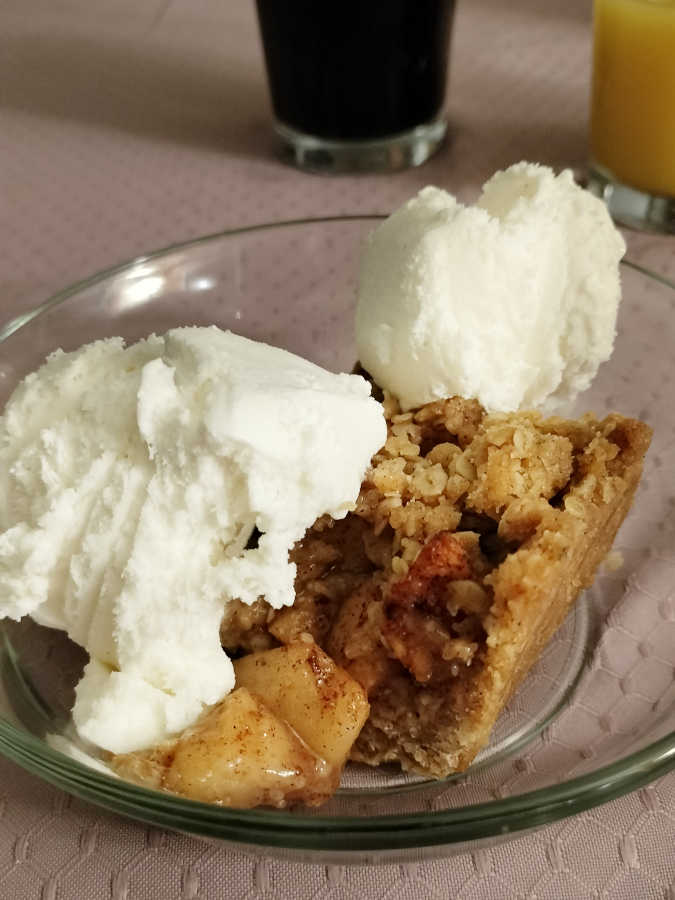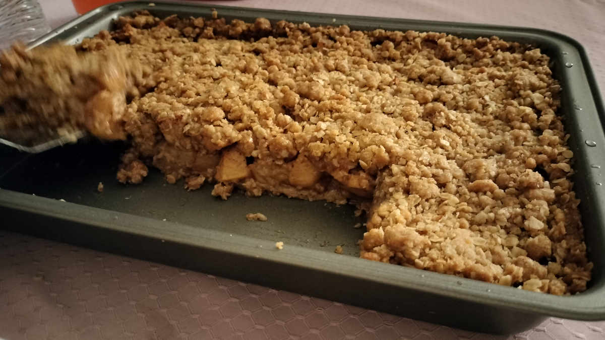 My dad—and this is of course my other dad now, keep up!—made beef stew for dinner, and Kitten made an apple crisp with a few dozen apples from the six metric tons Jill and Terry gave us...