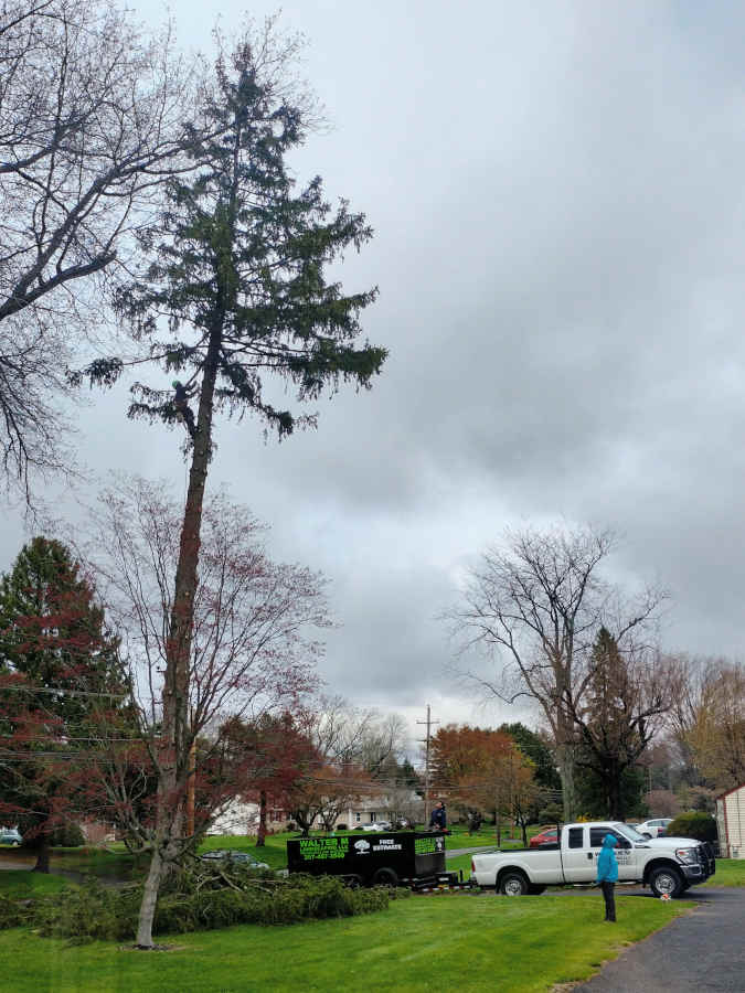 Then we headed over to Catherine and Ron's house for takeout from Taormina's. And Ron's lawn guy Walter was taking down the big pine tree in the front yard!