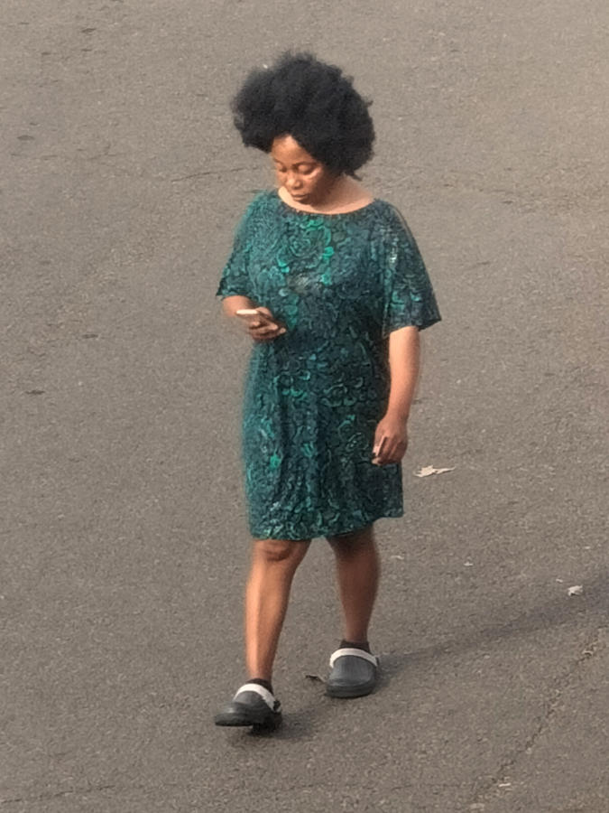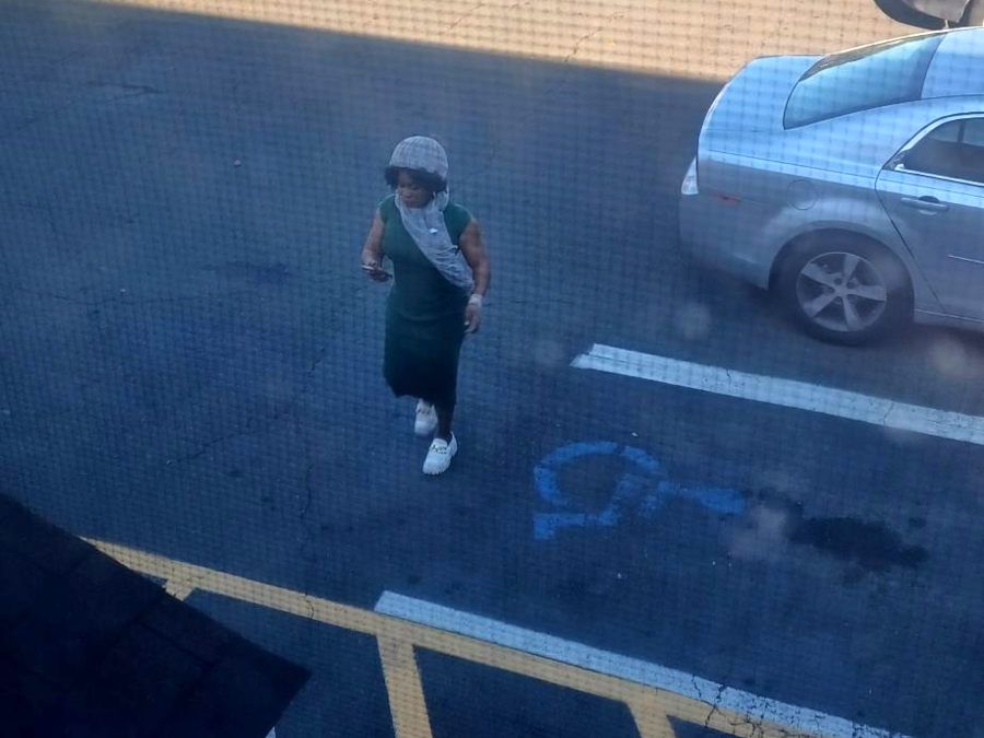 She just pops out of the weeds at the far end of the parking lot from time to time, looking like she snuck out of a mental asylum while the guard at the front door stepped away to grab a coffee...