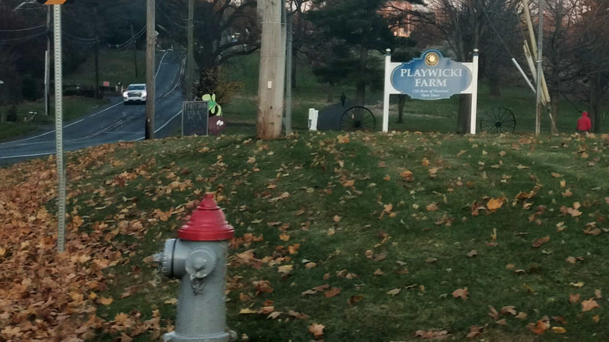 Welcome to Playwicki Farm! There's a fire hydrant... and a guy off to the right dressed like a fire hydrant!