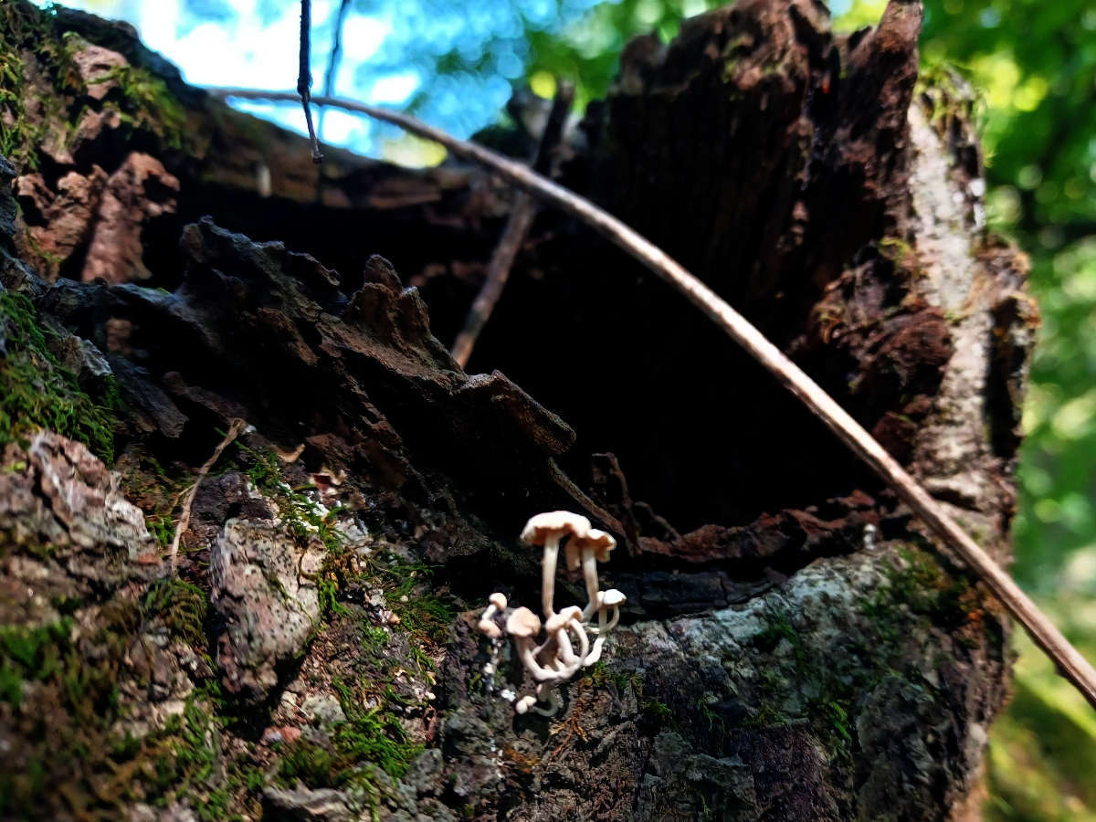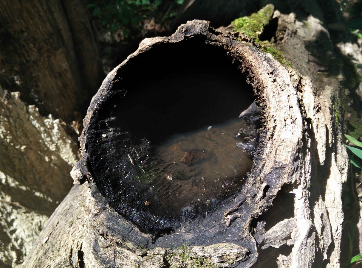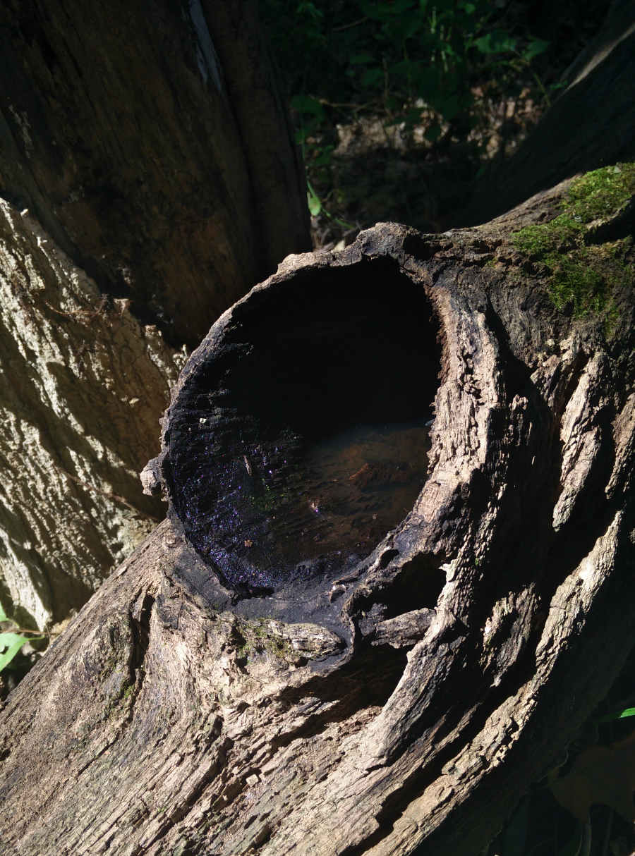 There was also this fascinating little habitat inside a dark-hollowed-out log, with mosquito larvae swimming in the water...