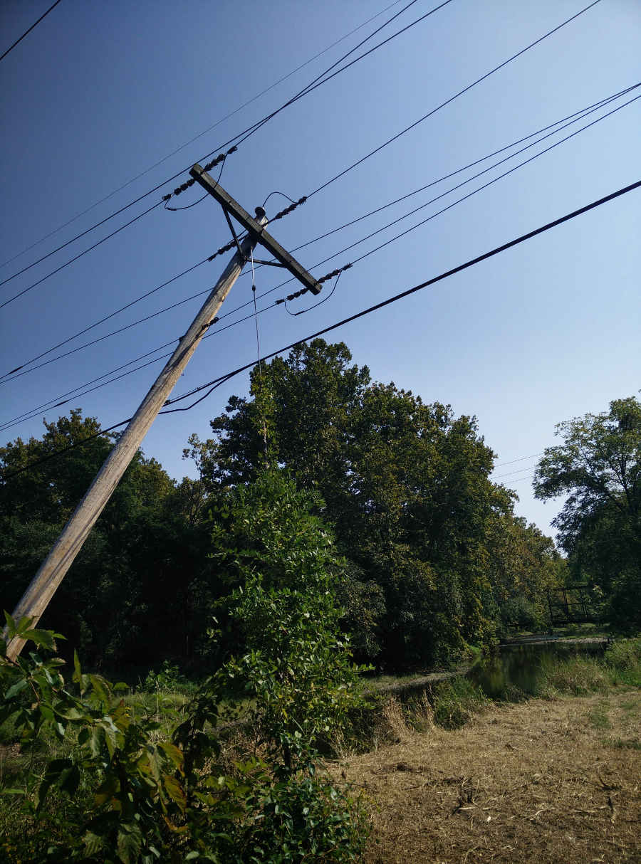 We encountered some power lines, along with a utility pole that looked like it's just going to give up at any moment.