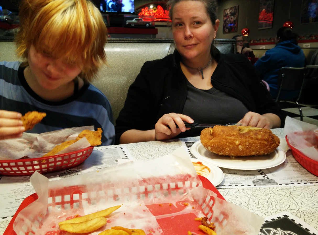 Athennia and I had intended to treat Kelly, Steve, and my parents to lunch (because my parents were kind enough to babysit Olivia and Hannah so Kelly and Steve could come help us in the first place). But, my mom ended up covering more than half the bill.