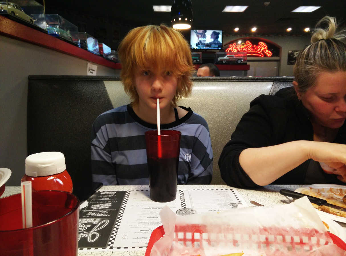 No, he actually collapsed right here in the restaurant the other day from dehydration and exhaustion: He spent two days in the hospital. Just got out this morning... and they told him to take the rest of the week off, but he called us and said he'll be in tomorrow.
