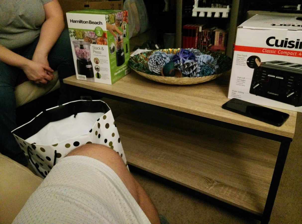 Monday night, we opened some housewarming and early Christmas gifts from Kelly and Steve that they thought we should have sooner rather than later...