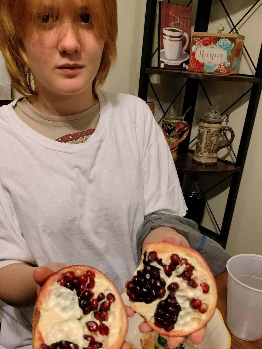 But first here is a picture of Riley gearing up to eat a pomegranate Friday night: