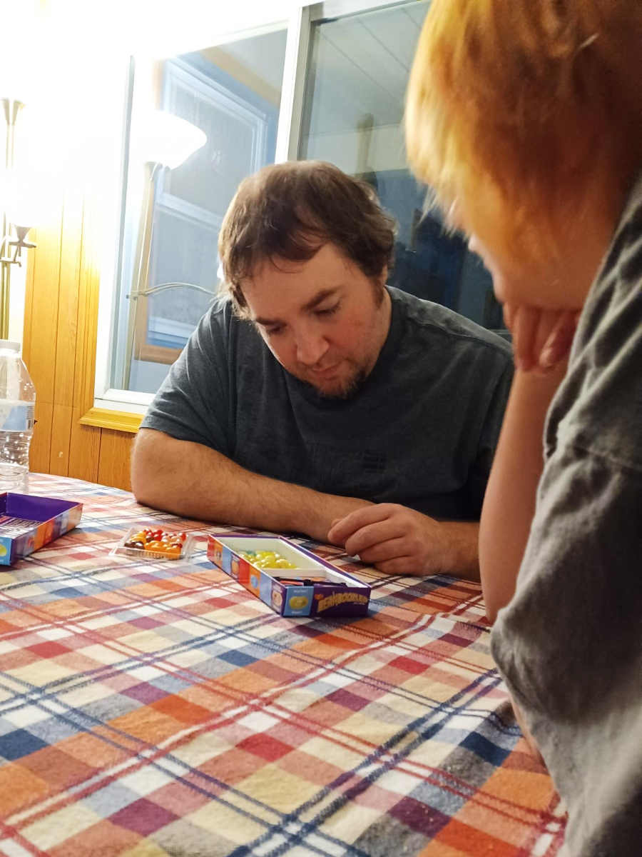 So, we visited for a while at Kevin's parents' house. And Kevin brought the remainder of our Beanboozled jelly beans with disgusting flavors, but no one was all that keen on eating any after our experience at Riley's birthday party!