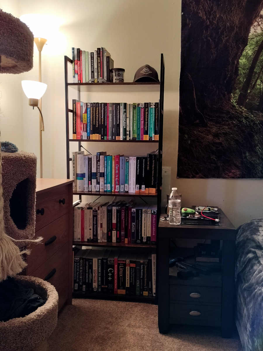 Last week when I confessed to Kevin that he's hard to shop for and asked what he wanted for Valentine's Day, he reminded me that he had run out of bookshelves and resorted to using his childhood bookcase for most of his computer science books in his "office" on his side of the bedroom. He knew it wasn't "romantic" but said he would love an upgrade if that was something I was interested in doing for him since he hadn't gotten around to it yet.