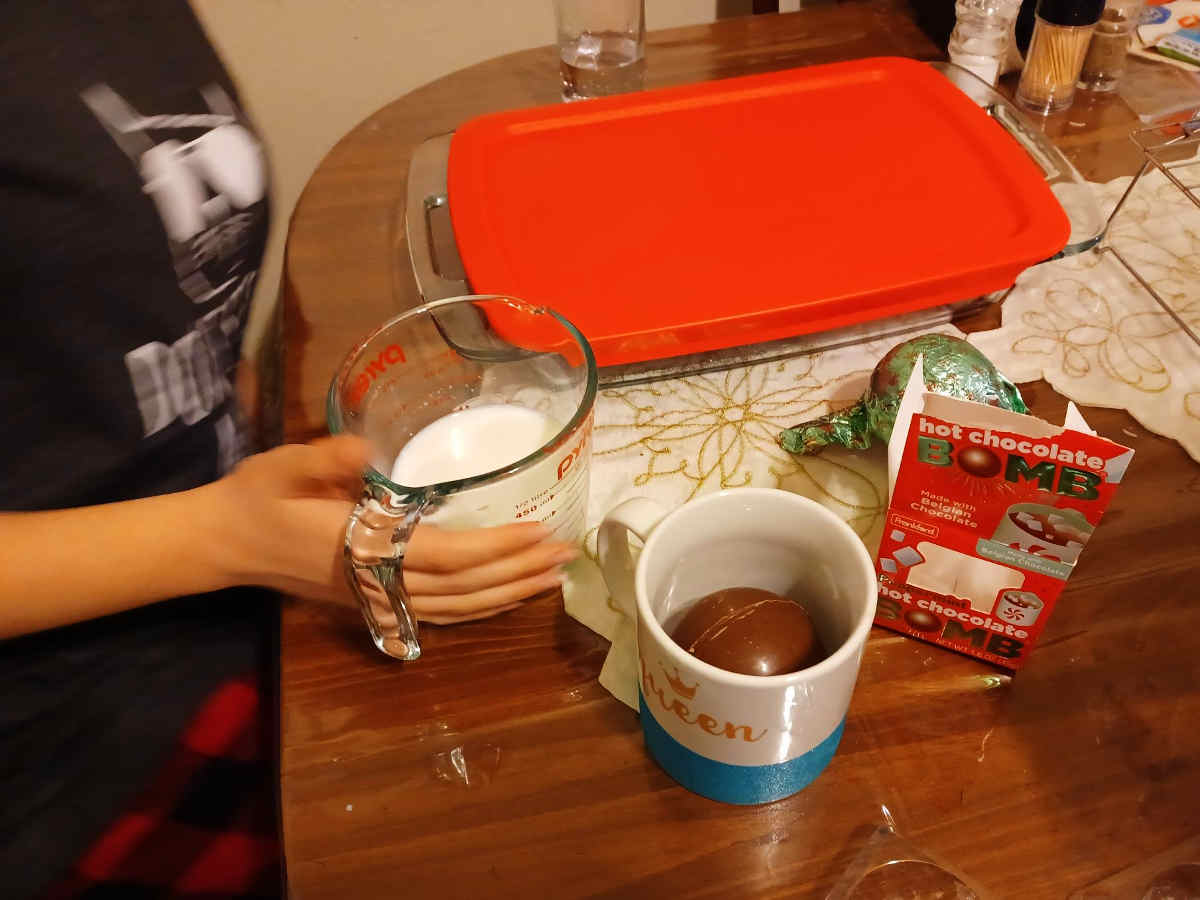 When we got home later, Riley wasted no time detonating the hot chocolate bomb Kelly and Steve gave her in the basket of candy: