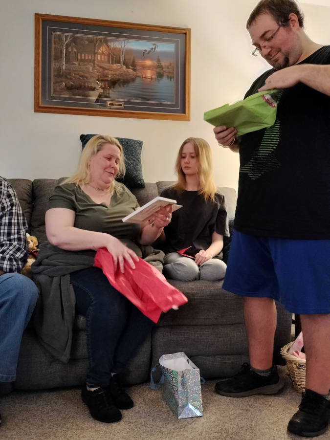 First, I gave her a new multi-effects pedal for her guitar—and this is apparently the best shot I got of that...