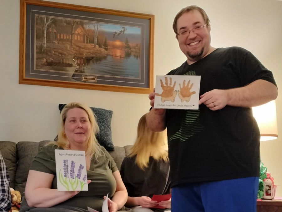 Kelly and Steve got us back though: It turned out they hadn't gotten us anything at all... They just put their young daughters to work in the sweatshop of the arts and crafts room, and made them make our presents from scratch!