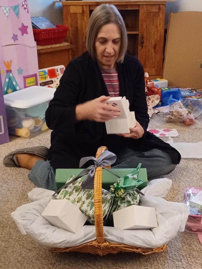 Next, we gave Kelly and Steve their real gift, which we'd also had a lot of fun creating—albeit not quite from scratch. (Like, we hadn't woven the basket together by hand or anything...)
