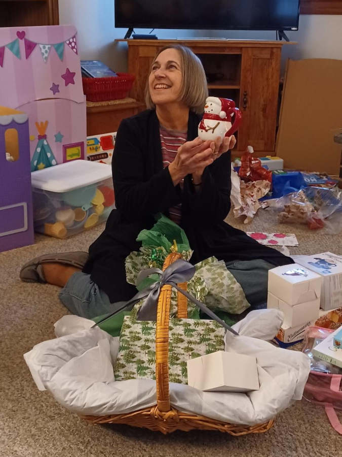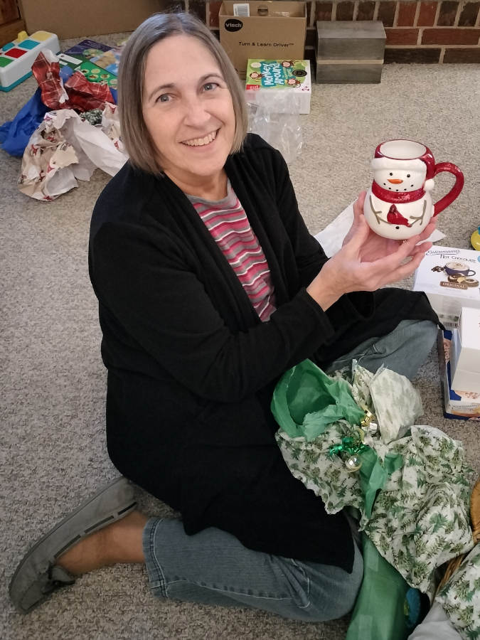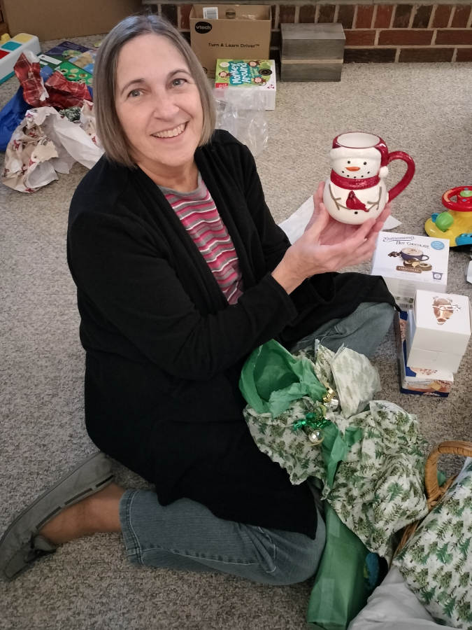 A snowman Christmas mug—with a cardinal on it, which we always used to see at my grandma's house as well...