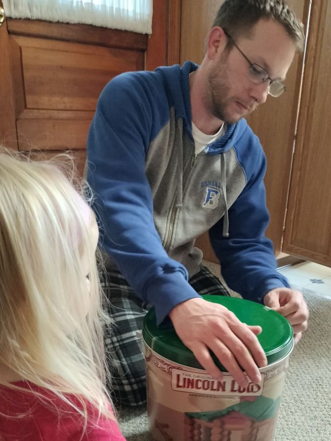 We also threw in some candy, some beef jerky, and some popcorn and cookies. And we included a toddler-friendly family game called Monkey Around to bring Olivia and Hannah into the fold as well :)