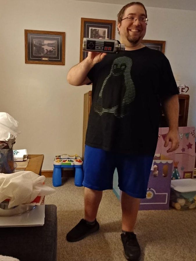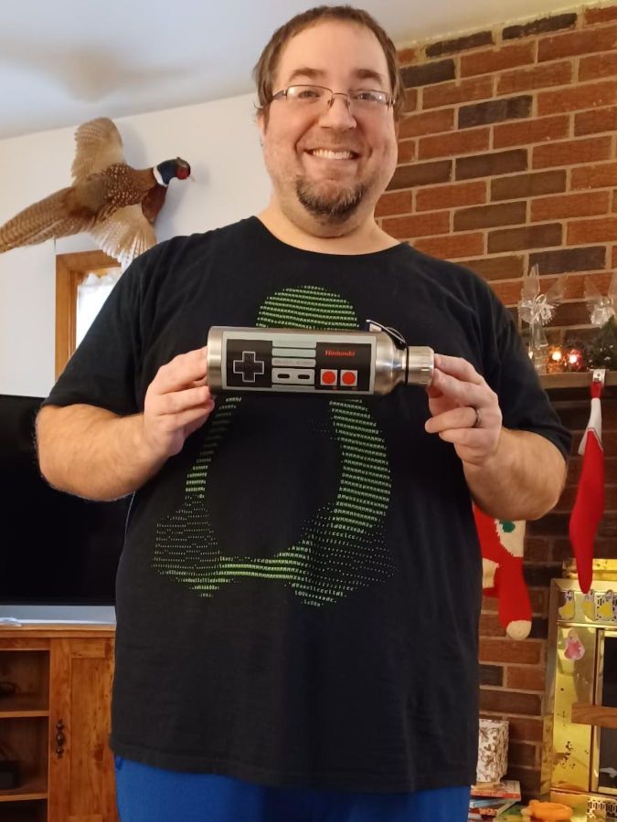 We had been in Barnes and Noble way back before Thanksgiving and came across a thermos that looked like an original Nintendo Entertainment System controller...