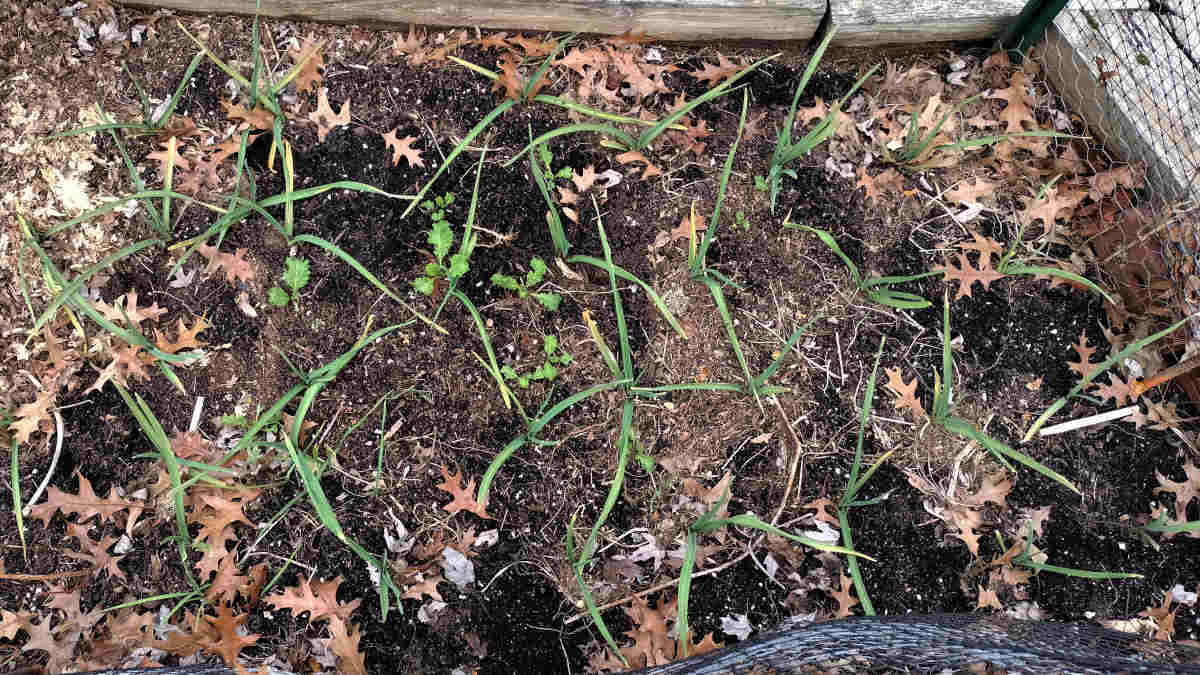 I checked on the garlic (and the volunteer mustard greens that think they have a chance at surviving the winter as well)...