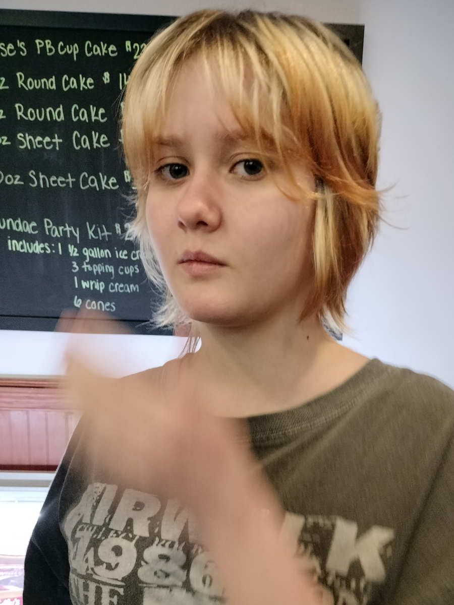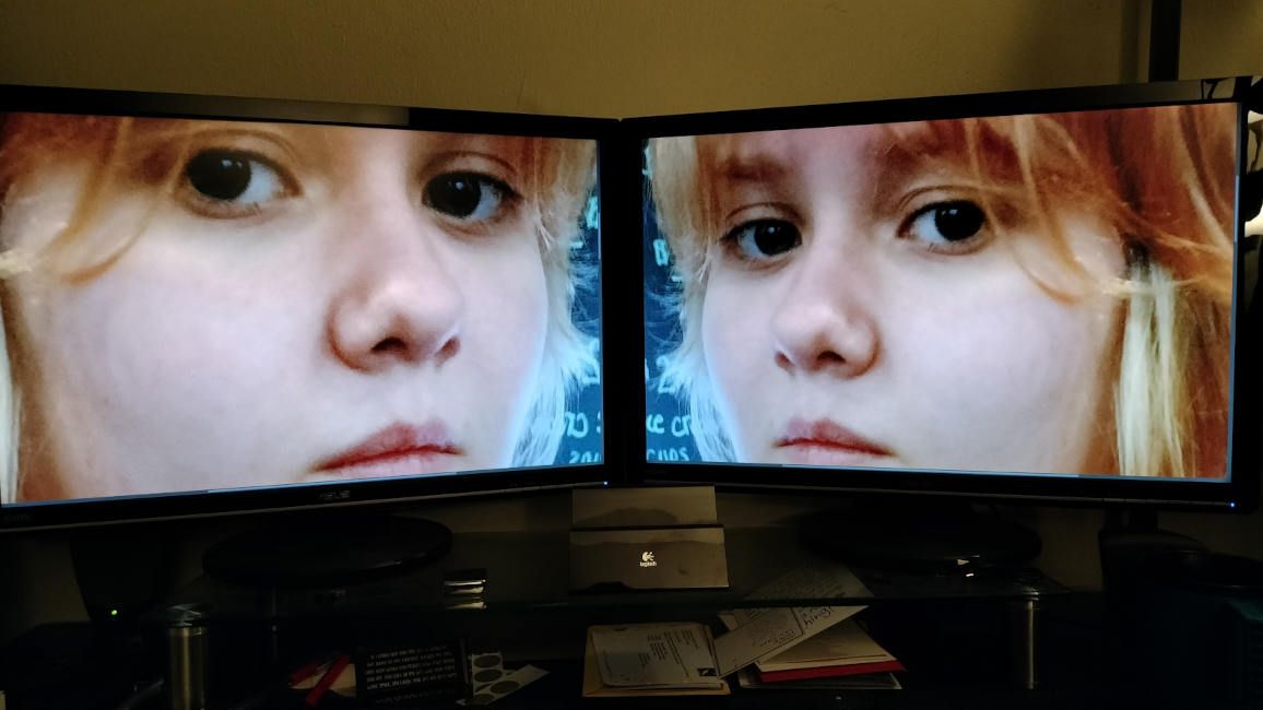 Sometimes Riley is determined not to let Kevin get a good picture of her, but sometimes he's too quick and manages to snap her before she gets her hand up over her face: