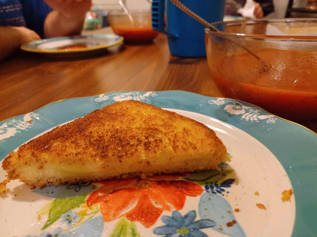 Monday evening I made us garlic grilled cheese and heated up some tomato basil soup: