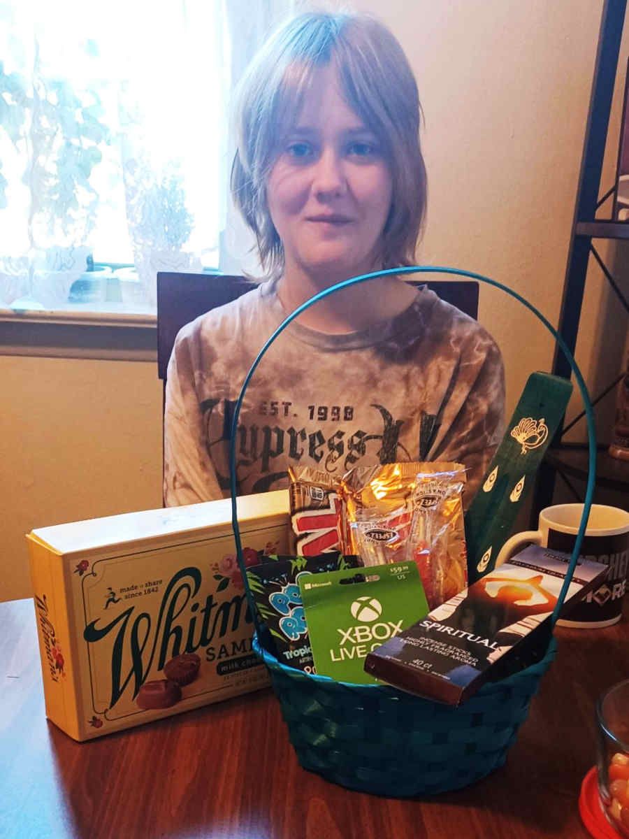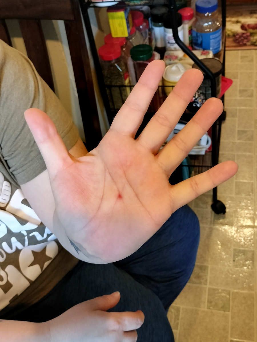 The next day was of course Easter Sunday. After breakfast, I gave Riley a few presents I'd bought for her (and I noticed that my minor injury from the park yesterday looked uncannily like some sort of stigmata):