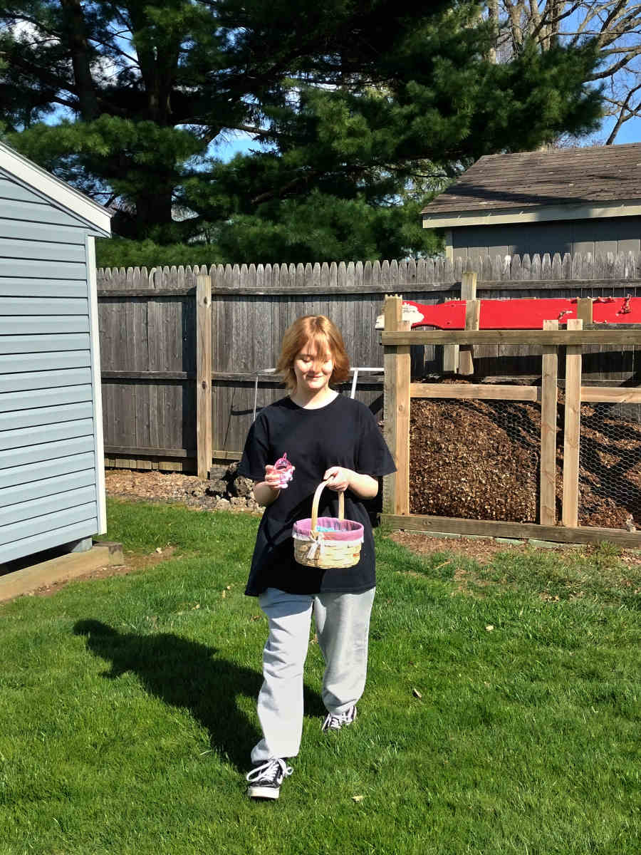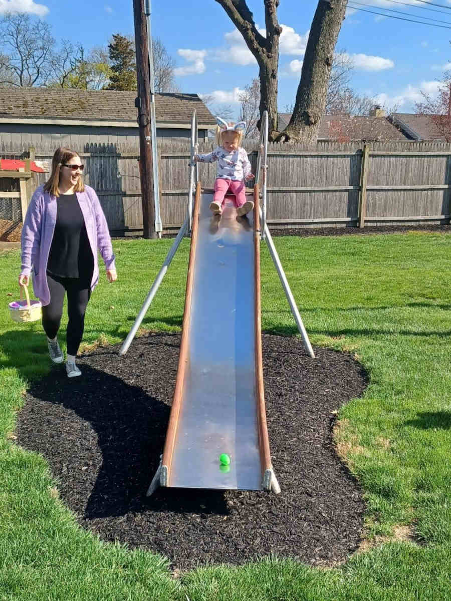 Liv showed extraordinarily advanced wartime strategy for a toddler, opting to sneak up on this particular egg and ambush it from behind!