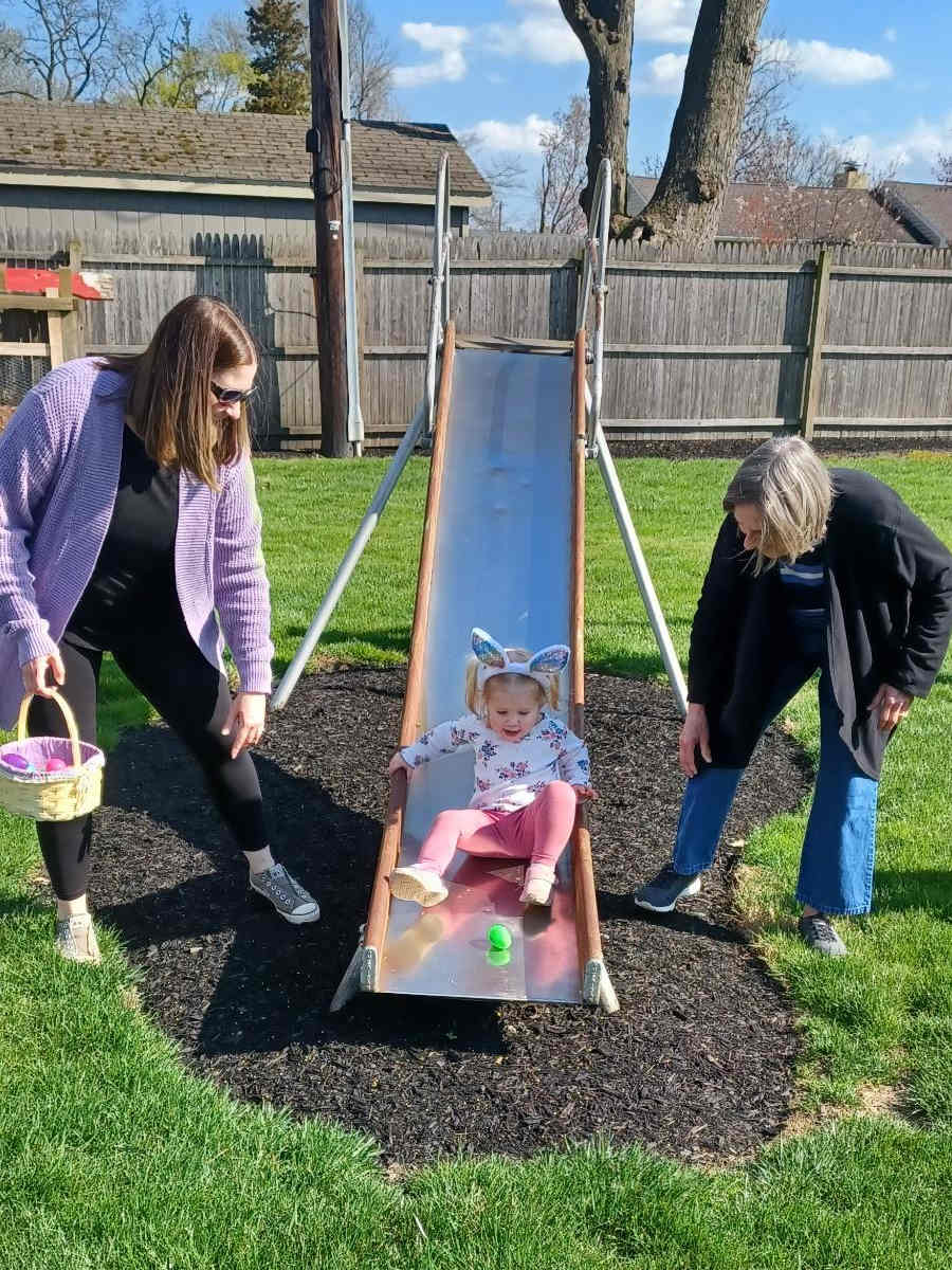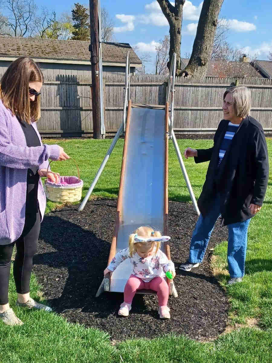 Kevin's mom had invited us over for dinner later in the afternoon, but not before a small egg hunt she and Kelly had planned for Olivia and Riley :)
