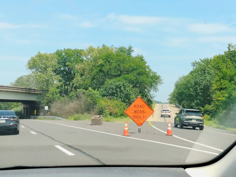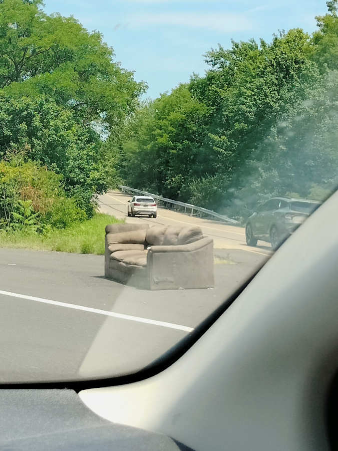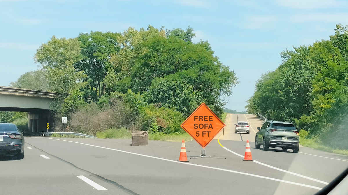 They had some cones up along with a sign alerting drivers about the road work in 1,500 feet. But nothing about the couch that someone had thoughtfully left on the side of the road: