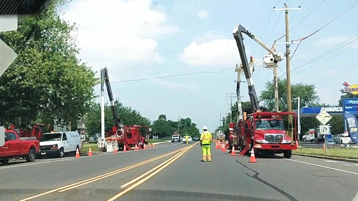 There was a crew putting up the new utility pole that's been sitting in the grass for months now on Trenton Rd just up from Woolston.