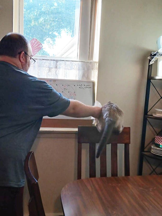 Then he said he had thought about changing the cat litter as well, but he didn't feel like it right then.