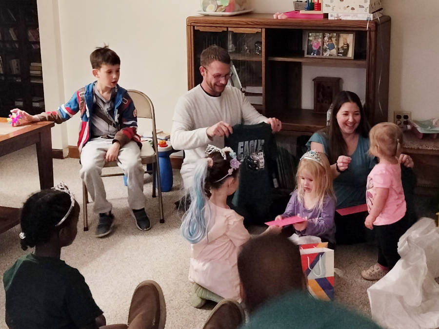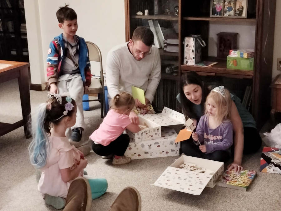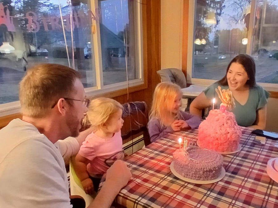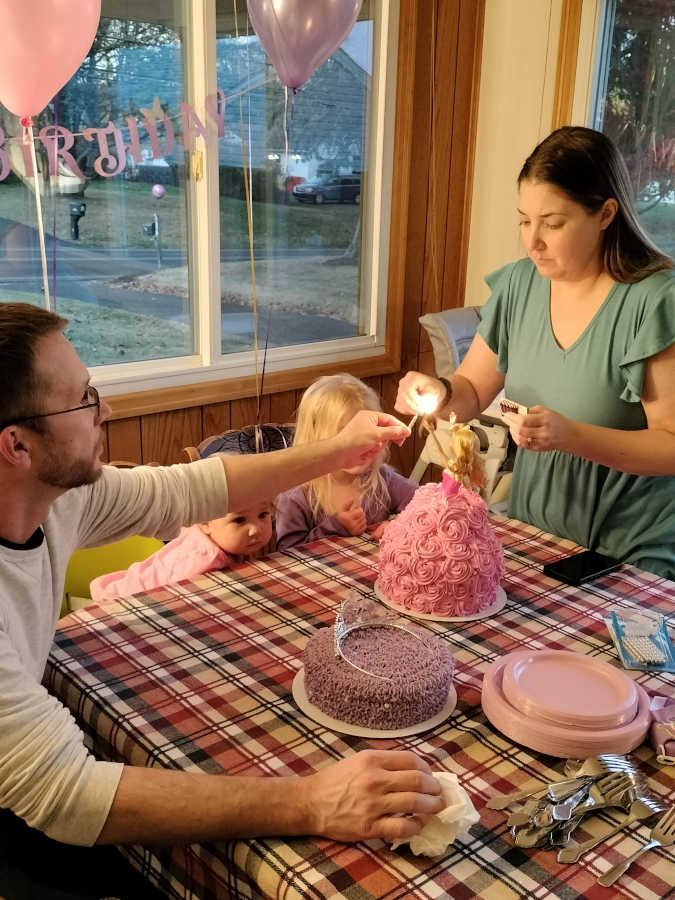 Kelly and Steve ordered a bunch of pizzas for dinner, and then it was time for cake...