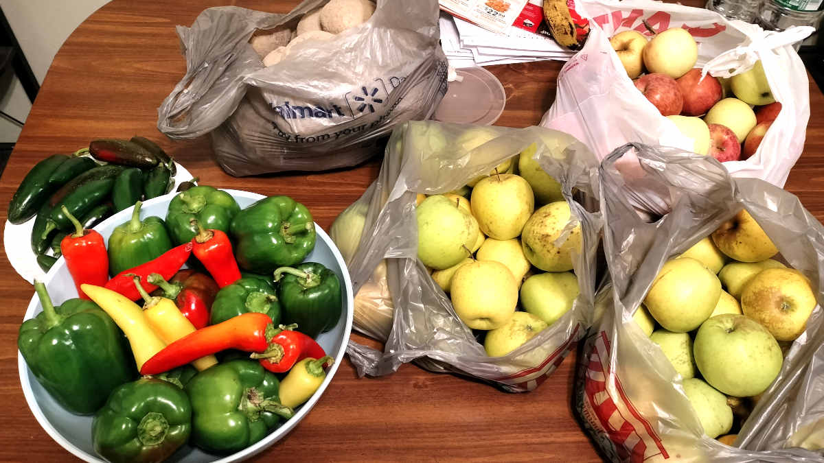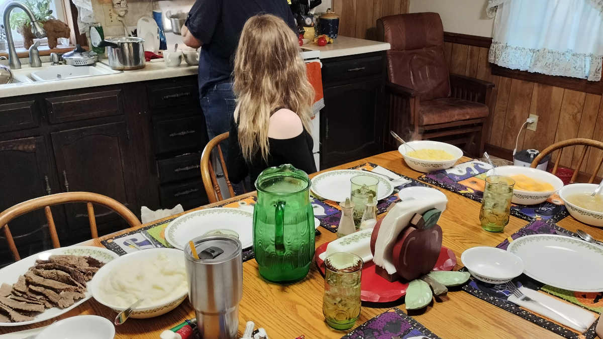 Aunt Jill cooked an entire farm-fresh meal for us, complete with their beef, their potatoes, their corn, their peaches, and their applesauce made from 100% apples!