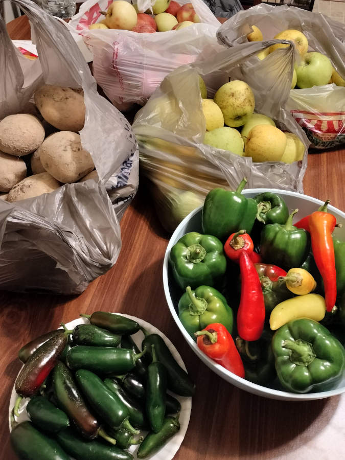 She called Terry out in the butcher shop to let him know we were here, and she let us know she had taken the liberty of harvesting a giant bag of potatoes for us earlier in the afternoon :)
