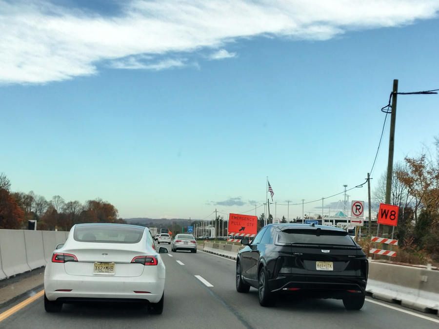 ...but there was also this black Lyriq with a Jersey plate in front of us—which, at this point right at the outset, we didn't yet know had been sent to pester us for our entire journey on the turnpike :/