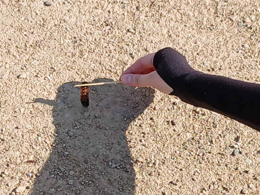 The rest of my squad stopped to try to save a caterpillar...