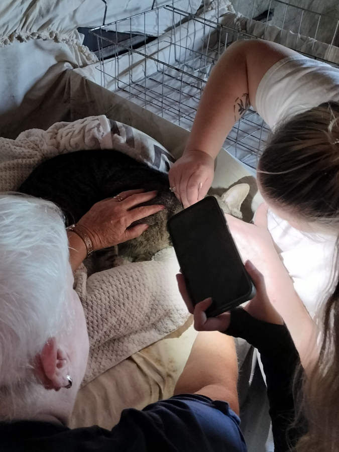 Aunt Jill mentioned that Kevin's cousin Becky's cat was living in their barn now because it had recently started peeing on all Becky's furniture.