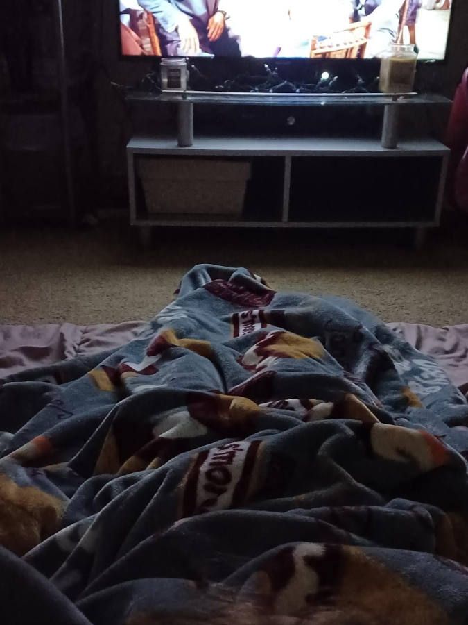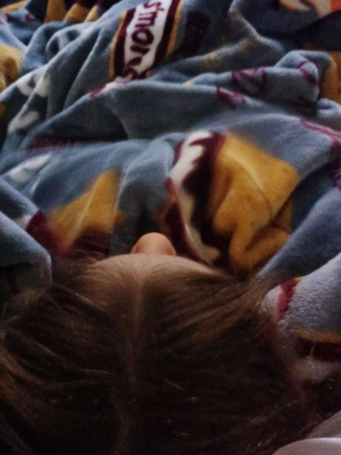 So, the two of them watched it together in Riley's room—and I was informed via photographic evidence that Riley got quite cozy under the king-sized s'mores blanket we bought for her a few weeks back...