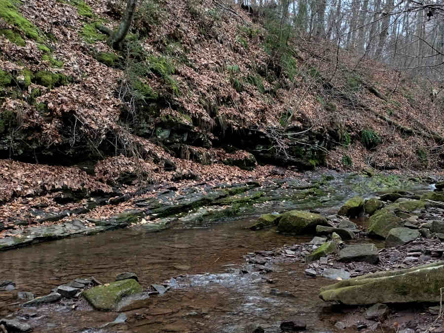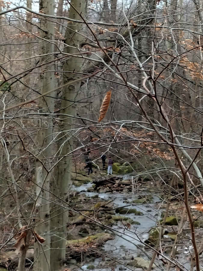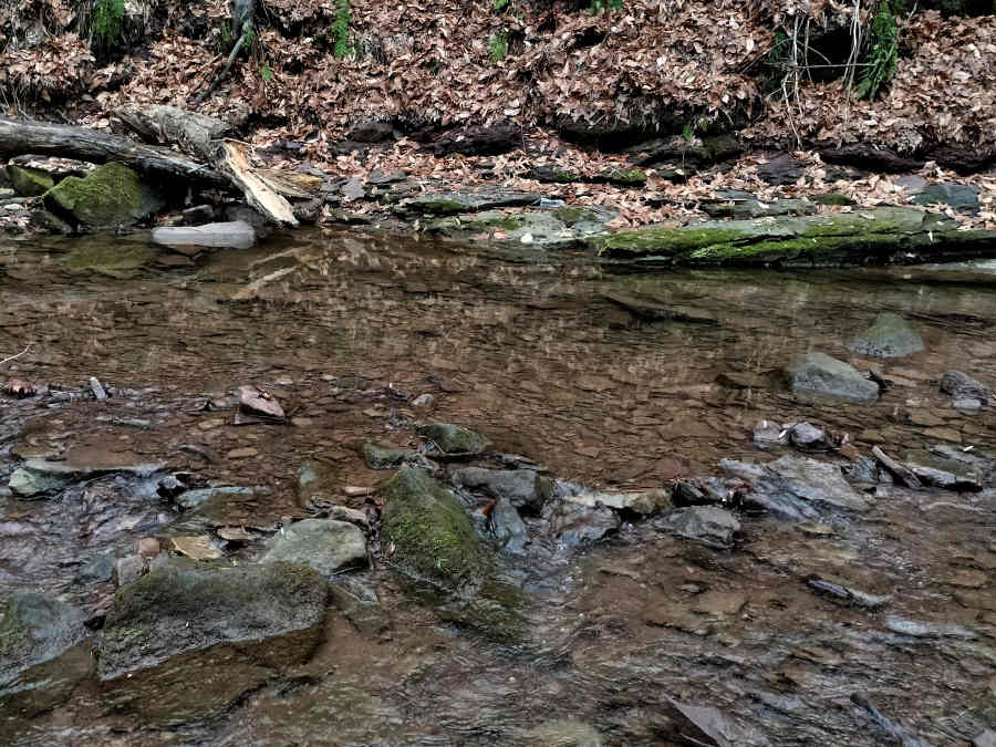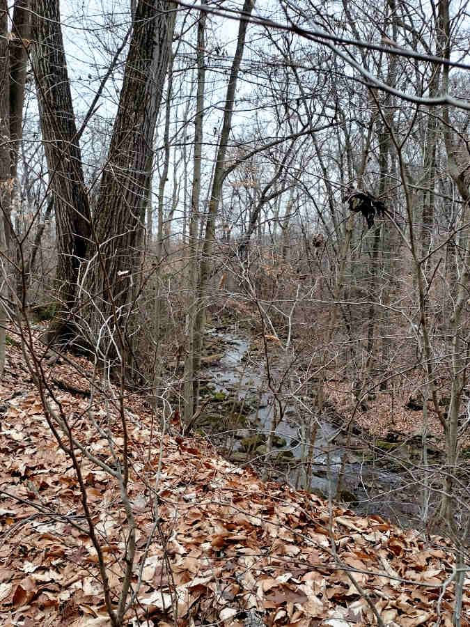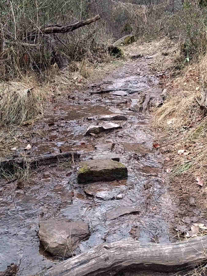 We tried to navigate the path running along the creek; but neither of us felt like taking a spill, and so we cut our losses and returned to the car to head over to the parking lot by the foot bridge so we could try our luck there instead.