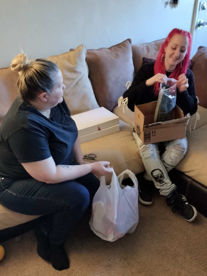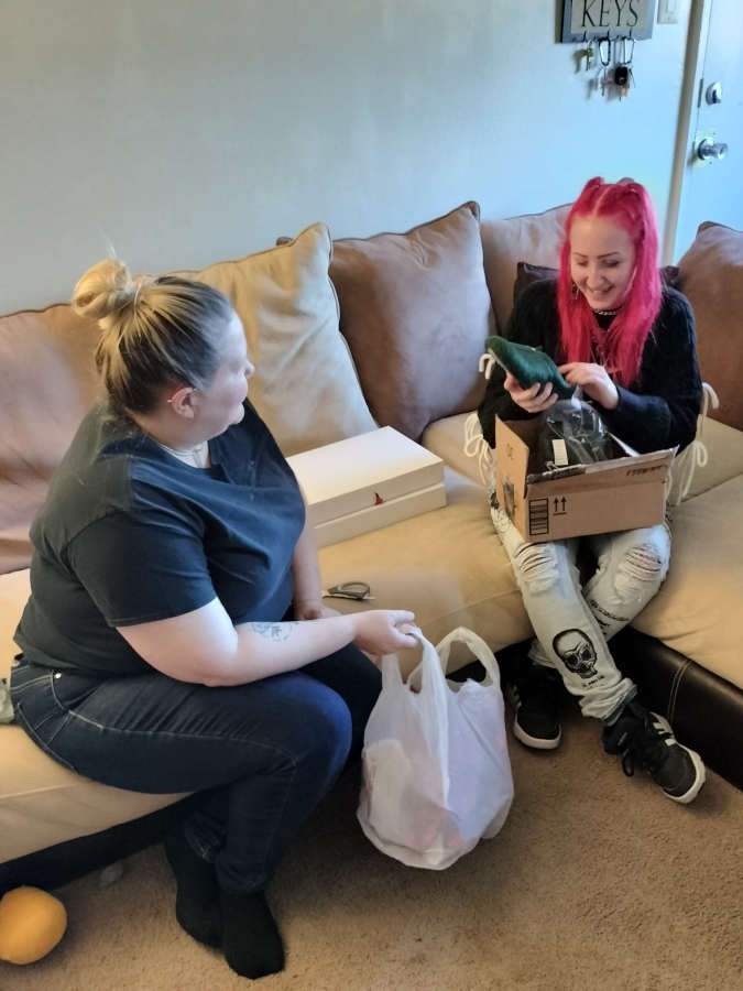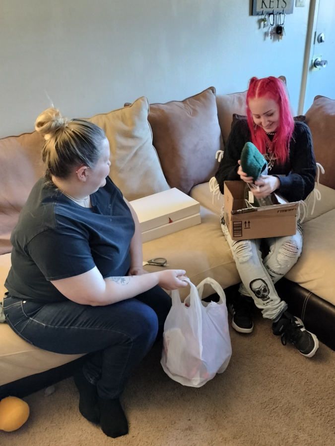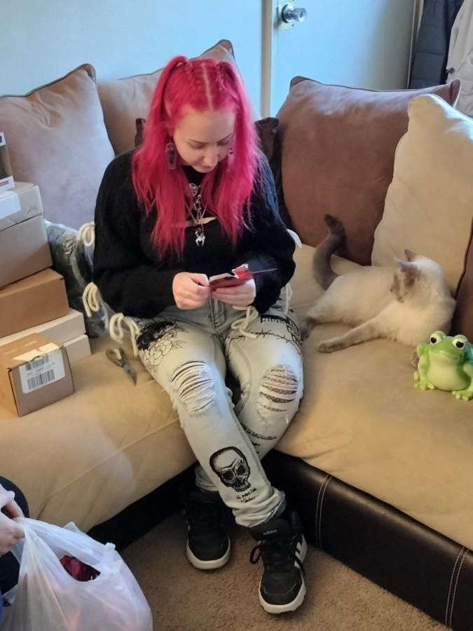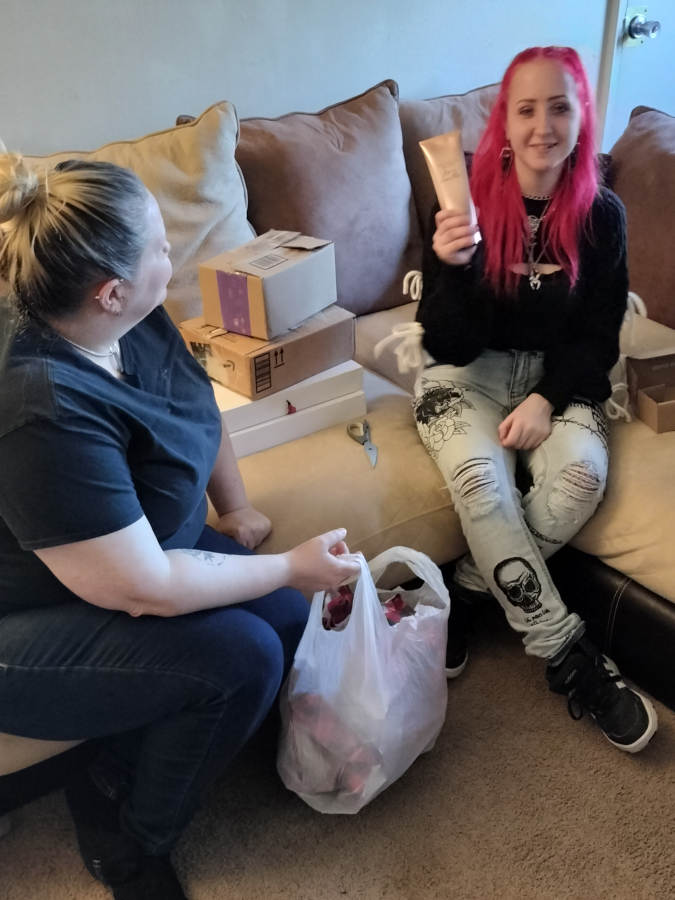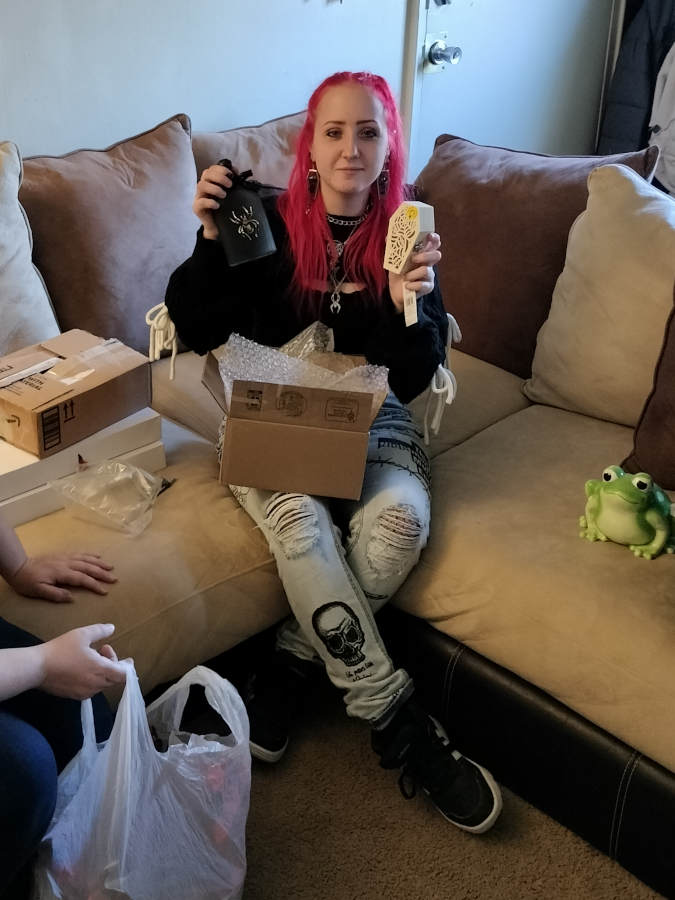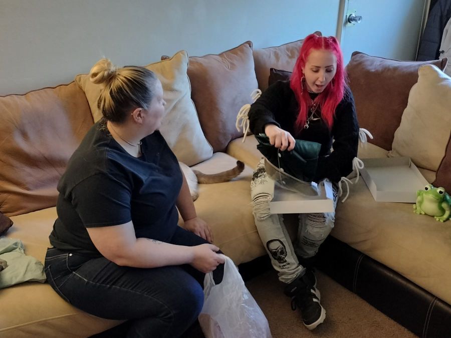 Taylor, Ahlina, and Ahlina's sister Damiante stopped by briefly while they were down from Connecticut for a concert in Reading; so we took the opportunity to give Taylor her Christmas presents so Athennia could watch her open them in person.