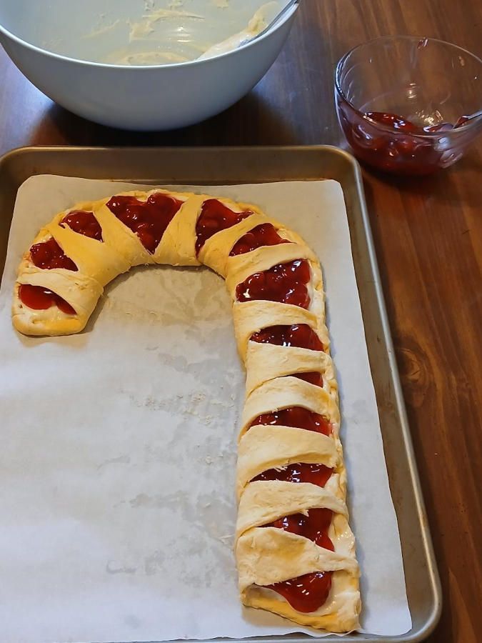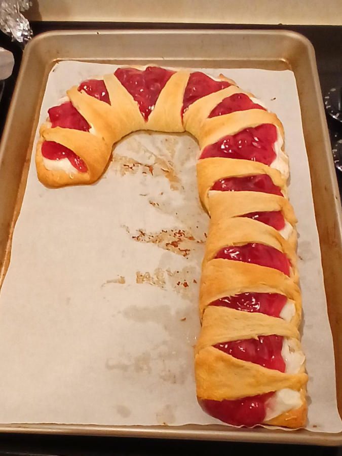 Dinner was awesome, and dessert was probably even better: Kelly made apple cider muffins, Angie made pumpkin pie, and Kitten made a cherry danish shaped like a candy cane...